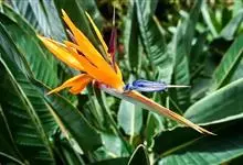 鹤望兰,别名天堂鸟,为鹤望兰科鹤望兰属的一种多年生草本植物;无木质树干;花序生于与叶柄近等长或稍短的花序梗上,佛焰苞1;花较小,萼片橙黄色,长7.5-10厘米,箭头状花瓣基部具耳状裂片,…全部>>