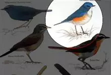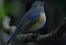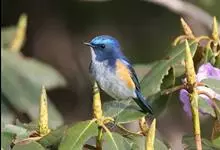 红胁蓝尾鸲俗名:蓝点冈子、蓝尾巴根子、蓝尾杰、蓝尾欧鸲。体型略小而喉白的鸲。特征为橘黄色两胁与白色腹部及臀成对比。雄鸟上体蓝色,眉纹白;亚成鸟及雌鸟褐色,尾蓝。…全部>>