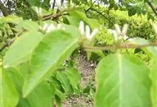 山银花在华南地区野外山林生长。木质藤本,长2~5m。树皮黄褐色渐次变为白色,嫩时有短柔毛。叶对生,卵圆形至椭圆形,长4~8cm,宽3.5~5cm,上面绿色,主脉上有短疏毛,下面带灰白色,密生白色短柔…全部>>