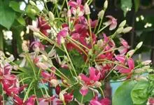 使君子 Jongkind)是使君子科、使君子属攀援灌木,叶对生,椭圆形,两面均被灰白色柔毛。穗状花序,倒挂下垂。花期夏秋。果有五棱,熟时黑色,种子白色。分布于印度、缅甸、菲律宾和中国。喜温润,深根性,…全部>>