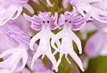 意大利红门兰,也称裸男兰、意大利男人兰,为兰科红门兰属的一种,植株高20-50厘米,花顶生,为发白的粉红色或紫色,花被片为头盔状,有暗色条纹,整朵花的造型就像一个戴着草帽的裸体男人。蒴果直立,…全部>>