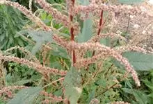 反枝苋是苋科苋属的一年生草本植物。株高达1米;茎密被柔毛;叶菱状卵形或椭圆状卵形,先端锐尖或尖凹,两面及边缘被柔毛,下面毛较密;穗状圆锥花序,顶生花穗较侧生者长;花被片长圆形或长圆状倒卵形,…全部>>