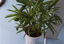 矮棕竹:丛生灌木,高1米或更高些,茎圆柱形,有节,上部被紧密的网状纤维的叶鞘,纤维毛发状,淡褐色。叶掌状深裂,裂片7-20片,线形,具1-2条肋脉,叶柄约与叶片等长,较细,两面凸起,边缘平滑。花雌雄…全部>>