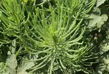盐地碱蓬 Pall.)是苋科碱蓬属植物。一年生草本,高20-80厘米,绿色或紫红色。茎直立,圆柱状,黄褐色,有微条棱,无毛;分枝多集中于茎的上部,细瘦,开散或斜升。叶条形,半圆柱状。…全部>>
