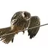 红隼:是隼科、隼属的小型猛禽之一。体重173-335克,体长305-360毫米。翅狭长而尖,尾亦较长,外形和共同爪隼非常相似。雄鸟头蓝灰色,背和翅上覆羽砖红色,具三角形黑斑;腰、尾上覆羽和尾羽蓝灰色,…全部>>