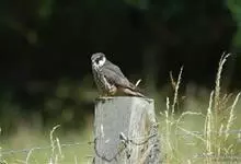 燕隼:是隼科、隼属的鸟类。体长约36厘米,体重140-340克。体形比猎隼、游隼等都小,为小型猛禽,雌鸟比雄鸟稍大;头部和颈后主要为灰黑色,颈后有一乳白色领斑;上体其余部分羽毛灰色,尾部稍淡,…全部>>
