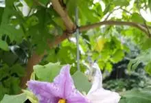 大花茄,别名木番茄,原产南美洲的玻利维亚至巴西。常绿大灌木或小乔木,株高3至5米,茎直立,小枝及叶柄具刚毛与皮刺,叶互生,叶片大、通常羽状半裂,叶面具刚毛状单毛。花腋生,花冠粉红色,…全部>>
