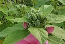 芙蓉葵是锦葵科木槿属植物,又名草芙蓉、大花秋葵,原产于北美。落叶灌木状。叶大、广卵形,叶柄、叶背密生灰色星状毛。花大,单生于叶腋,有白、粉、红、紫等色。喜阳、略耐阴,宜温暖湿润气候,忌干旱,耐水湿,…全部>>