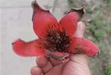 木棉是锦葵科、木棉属落叶大乔木,树皮灰白色,幼树的树干通常有圆锥状的粗刺;分枝平展。掌状复叶,小叶5-7片,长圆形至长圆状披针形,花单生枝顶叶腋,通常红色,有时橙红色,直径约10厘米;萼杯状,…全部>>