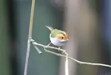 棕脸鹟莺:体长10厘米,是一种色彩亮丽而有特色的莺鸟。头栗色,具黑色侧冠纹。上体绿,腰黄色。下体白,颏及喉杂黑色点斑,上胸沾黄。与栗头鹟莺的区别在头侧栗色,白色眼圈不显著且无翼斑。…全部>>