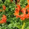 硬骨凌霄 Spach)是紫葳科硬骨凌霄属的多年生常绿木质藤本植物。茎多分枝;枝带绿褐色;叶对生,奇数羽状复叶,边缘有锯齿;总状或圆锥花序顶生,花冠漏斗状,橙红色或橙黄色;蒴果长线形,略扁;花期几乎全年,…全部>>