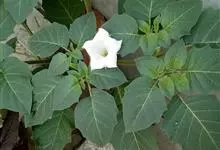曼陀罗,茄科曼陀罗属一年生大型草本植物,全株光滑。有臭气;叶呈广卯形,边缘具不规则波状浅齿裂;花单生于枝杖间或叶腋,直立,有短梗;花萼是筒状裂片三角形,颜色为白色或淡紫色;果实为蒴果卵状,…全部>>