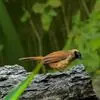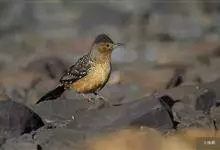 大噪鹛:中型鸟类,体长32-36厘米。额至头顶黑褐色,背栗褐色满杂以白色斑点,斑点前缘或四周还围有黑色。初级覆羽、大覆羽和初级飞羽具白色端斑。尾特长,均具黑色亚端斑和白色端斑。颏、喉棕褐色,…全部>>