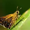 姜弄蝶 Udaspes folus ,又叫银斑姜蝶。幼虫吐丝粘叶成苞,隐藏其中取食,受害叶呈缺刻或在1/3处断落,…全部>>