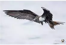 军舰鸟是鹈形目军舰鸟科军舰鸟属鸟类的通称,又称军人鸟。身体较小,腿又短又细,长有钩状嘴;翅膀细长,有很长的叉形尾巴。雄鸟体羽全黑,雌鸟大多数背部、头部和腹部为略带黑色的褐色,而胸部和腋距为白色。…全部>>