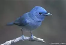 棕腹大仙鹟:体重24-28克,体长15-17厘米,是一种小型的色彩亮丽的鹟。雄鸟上体深蓝,下体棕色,脸黑,额、颈侧小块斑、翼角及腰部亮丽闪辉蓝色。与棕腹仙鹟易混淆,区别在色彩较暗。雌鸟灰褐,…全部>>