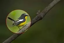 白眉姬鹟是小型鸟类,体长11-14厘米。雄鸟上体大部黑色,眉纹白色,在黑色的头上极为醒目。腰鲜黄色,两翅和尾黑色,翅上具白斑。下体鲜黄色。雌鸟上体大部橄榄绿色。腰鲜黄色,翅上亦具白斑。下体淡黄绿色。…全部>>