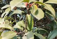 红叶石楠 是蔷薇科,石楠属杂交种,为常绿小乔木或灌木,乔木高可达5米、灌木高可达2米。叶片革质,长圆形至倒卵状、披针形,叶端渐尖,叶基楔形,叶缘有带腺的锯齿,花多而密,复伞房花序,花白色,梨果黄红色,…全部>>