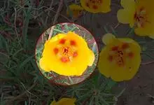 大花马齿苋:一年生草本,高10-30厘米。茎平卧或斜升,紫红色,多分枝,节上丛生毛。叶密集枝端,较下的叶不规则互生,叶片细圆柱形,无毛。花单生或数朵簇生枝端,直径2.5-4厘米,…全部>>