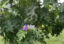 大花茄,别名木番茄,原产南美洲的玻利维亚至巴西。常绿大灌木或小乔木,株高3至5米,茎直立,小枝及叶柄具刚毛与皮刺,叶互生,叶片大、通常羽状半裂,叶面具刚毛状单毛。花腋生,花冠粉红色,…全部>>