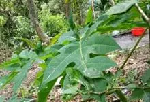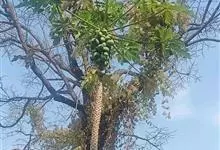 番木瓜,番木瓜科番木瓜属的常绿软木质小乔木,高达10米,具有乳汁;茎不分枝或有时于损伤处分枝;叶大且聚生于茎顶,近似盾形,叶柄中空;花单性或两性,有些品种雄株偶尔生两性花或雌花,…全部>>