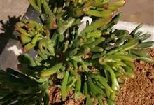 筒叶花月,是景天科青锁龙属的多年生草本植物。植株多分株,灌木状,茎较粗壮,圆柱形,表皮灰褐色;叶片肉质,互生,呈圆筒状,簇生于茎或分枝顶端,叶端呈斜截形,截面为椭圆形;花呈星状,淡白色;花期秋季。…全部>>