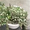 筒叶花月,是景天科青锁龙属的多年生草本植物。植株多分株,灌木状,茎较粗壮,圆柱形,表皮灰褐色;叶片肉质,互生,呈圆筒状,簇生于茎或分枝顶端,叶端呈斜截形,截面为椭圆形;花呈星状,淡白色;花期秋季。…全部>>