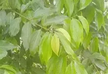 天竺桂,是樟科樟属乔木植物,枝条细弱呈圆柱形,无毛;叶近对生或在枝条上部互生,呈卵圆状长圆形或披针形,上面绿色,下面灰绿色;花序梗与序轴均无毛,花被片呈卵形;果长圆形,…全部>>