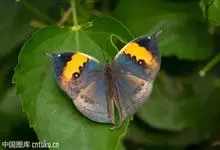 枯叶蛱蝶,又名木叶蝶、树叶蝶等,属于蛱蝶科。翅正面黑褐色,具深蓝色光泽,前翅顶角尖出,顶区有1枚小白点,中部有1条倾斜的橙色斑带,从前缘延伸至Cu室外缘,u室中部有1枚黑色圆斑,…全部>>
