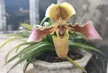 兜兰又称拖鞋兰。兰科多年生草本。多数为地生种,杂交品种较多。是栽培最普及的洋兰之一。主要分布亚洲热带和亚热带林下。喜温暖、湿润和半阴的环境。茎甚短;叶片带形或长圆状披针形,绿色或带有红褐色斑纹。…全部>>