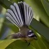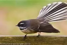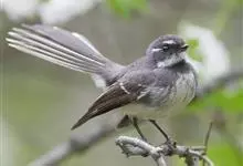 白眉扇尾鹟:体长17厘米,是一种中等体型的灰色扇尾鹟。色彩独特。宽宽的眉纹及前额白色,尾有白色宽边。髭纹白色,与黑色的脸及喉成对比;尾呈扇形,4对中央尾羽黑褐色,邻近两对具宽的白色端斑,最外侧两对白…全部>>