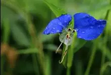 鸭跖草,是鸭跖草科鸭跖草属的—年生披散草本植物。鸭跖草的茎匍匐生根,多分枝;叶披针形或卵状披针形;萼片膜质,花瓣深蓝色;蒴果椭圆形;种子棕黄色,一端平截,腹面平,有不规则窝孔;花期7-9月,…全部>>