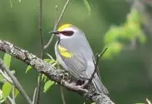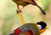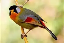 银耳相思鸟小型鸟类,体长14~18厘米。头顶黑色,耳羽银灰色,前额橙黄色;外侧飞羽橙黄色,基部朱红色,极为鲜艳、醒目。尾圆形,尾上、尾下覆羽朱红色,尾暗灰褐色,外侧尾羽橙黄色,其余上体橄榄绿或橄榄黄色。…全部>>