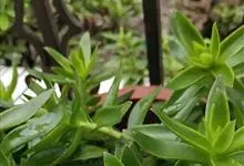 筒叶花月,是景天科青锁龙属的多年生草本植物。植株多分株,灌木状,茎较粗壮,圆柱形,表皮灰褐色;叶片肉质,互生,呈圆筒状,簇生于茎或分枝顶端,叶端呈斜截形,截面为椭圆形;花呈星状,淡白色;花期秋季。…全部>>