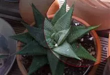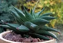 条纹十二卷 Haw.)是芦荟科十二卷属植物,为多年生肉质草本植物。植株高度10-15厘米,其呈莲座状生长;叶片紧密轮生在茎轴上,柔软多汁,呈长三角状披针形,极肥厚;叶面光滑、扁平,色深绿;叶背突起,…全部>>