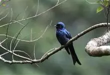 发冠卷尾是中型鸟类,体长28-35厘米。通体绒黑色缀蓝绿色金属光泽,额部具发丝状羽冠,外侧尾羽末端向上卷曲。栖息于海拔1500米以下的低山丘陵和山脚沟谷地带,多在常绿阔叶林、次生林或人工松林中活动。…全部>>