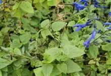 天蓝鼠尾草又名洋苏叶,为唇形科多年生植物,根系发达,地上部分丛生,茎近于木质,较矮,叶对生,灰银色,椭圆形有锯齿,叶柄较长,上密布白色绒毛,触感犹如天鹅绒,基部叶片近叶柄较窄,茎上叶片长,较尖。花6…全部>>