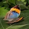 枯叶蛱蝶,又名木叶蝶、树叶蝶等,属于蛱蝶科。翅正面黑褐色,具深蓝色光泽,前翅顶角尖出,顶区有1枚小白点,中部有1条倾斜的橙色斑带,从前缘延伸至Cu室外缘,u室中部有1枚黑色圆斑,…全部>>