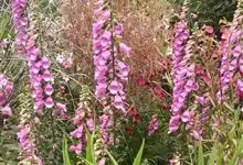 毛地黄是车前科、毛地黄属一年生或多年生草本植物。株高0.5—1米,茎直立,少分枝,全株被灰白色短柔毛和腺毛叶基生,呈莲座状,卵圆形或卵状披针形。顶生总状花序,花冠钟状,紫红色,内面有浅白斑点。菊果卵形。…全部>>