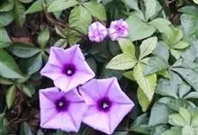 五爪金龙 Sweet),旋花科番薯属多年生缠绕草本植物。茎细长,有细棱;叶片为掌状;花冠紫红色、紫色或淡红色、偶有白色,漏斗状;蒴果近球形。花期5~12月。五爪金龙的叶子类似掌状,有5至7个裂痕,…全部>>