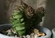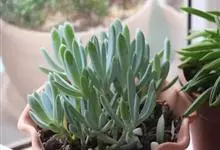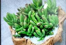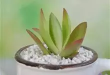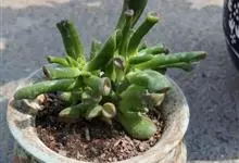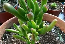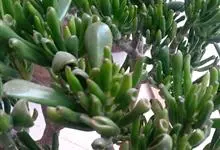 筒叶花月,是景天科青锁龙属的多年生草本植物。植株多分株,灌木状,茎较粗壮,圆柱形,表皮灰褐色;叶片肉质,互生,呈圆筒状,簇生于茎或分枝顶端,叶端呈斜截形,截面为椭圆形;花呈星状,淡白色;花期秋季。…全部>>