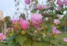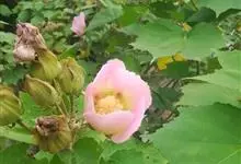 木芙蓉,锦葵科木槿属落叶灌木或小乔木。小枝上有细绒毛;叶片为卵状心形,托叶为披针形,常早落;花单生,花萼为钟形,花冠初为白色或淡红色,后逐渐变为深红色;果实为扁球形,有淡黄色的毛附着。花期8到10月。…全部>>