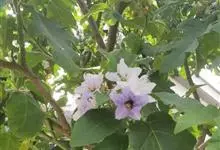 大花茄,别名木番茄,原产南美洲的玻利维亚至巴西。常绿大灌木或小乔木,株高3至5米,茎直立,小枝及叶柄具刚毛与皮刺,叶互生,叶片大、通常羽状半裂,叶面具刚毛状单毛。花腋生,花冠粉红色,…全部>>