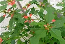 猩猩草:常绿或半常绿灌木,盆栽时株高0.5米-2米,在亚热带地区可长到6米以上。茎直立而光滑,单叶互生,卵状椭圆形至阔披针形,具不规则的深缺刻。长10-15厘米。花小,有蜜腺,排列成密集的伞房花序。…全部>>