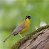 黄喉噪鹛体型略小,顶冠蓝灰色,特征为具黑色的眼罩和鲜黄色的喉。上体褐色,尾端黑色而具白色边缘,腹部及尾下覆羽皮黄色而渐变成白色。黄喉噪鹛隐匿于亚热带常绿林和浓密灌丛,于地面杂物中取食,喜食昆虫,…全部>>