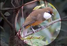 白颊噪鹛是雀形目噪鹛科噪鹛属鸟类,又称土画眉、小画眉、小噪鹃。成鸟额至头顶栗褐色,长眉纹、眼先和颊纹棕白色,眼后至耳羽深褐色,…全部>>