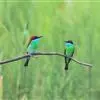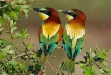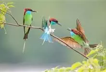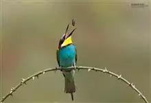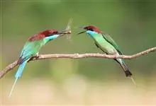 蓝颊蜂虎:是蜂虎科、蜂虎属的鸟类,共有2个亚种。体长27-33厘米,翼展46-49厘米,体重38-50克。嘴形细长而下弯,先端尖,…全部>>