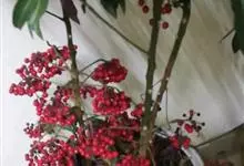 朱砂根是报春花科紫金牛属植物,又名铁凉伞、红铜盘、百两金、大罗伞、开喉箭等,为常绿小灌木,高1~2米,茎粗壮,无毛,除侧生特殊花枝外,无分枝,叶片革质或坚纸质,椭圆形、椭圆状披针形至倒披针形,…全部>>