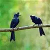 黑卷尾是雀形目卷尾科一属,又称铁练甲、铁燕子、铁林哥、羊蹄刺、榨油郎,体长约30厘米全身蓝黑色而具金属光泽,尾长且分叉较深。幼鸟似成鸟,金属光泽弱,下腹部具近白色的横纹。虹膜暗红色,嘴黑色,脚黑色。…全部>>