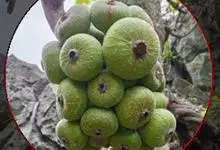 大果榕是桑科榕属的小乔木,株高可达10米;幼枝被柔毛;叶互生,宽卵状心形或近圆形;雄花无梗、匙形、花丝长,雌花生于雌株榕果内,子房白色;榕果簇生于树干基部或老茎短枝上、扁球形或陀螺形,…全部>>